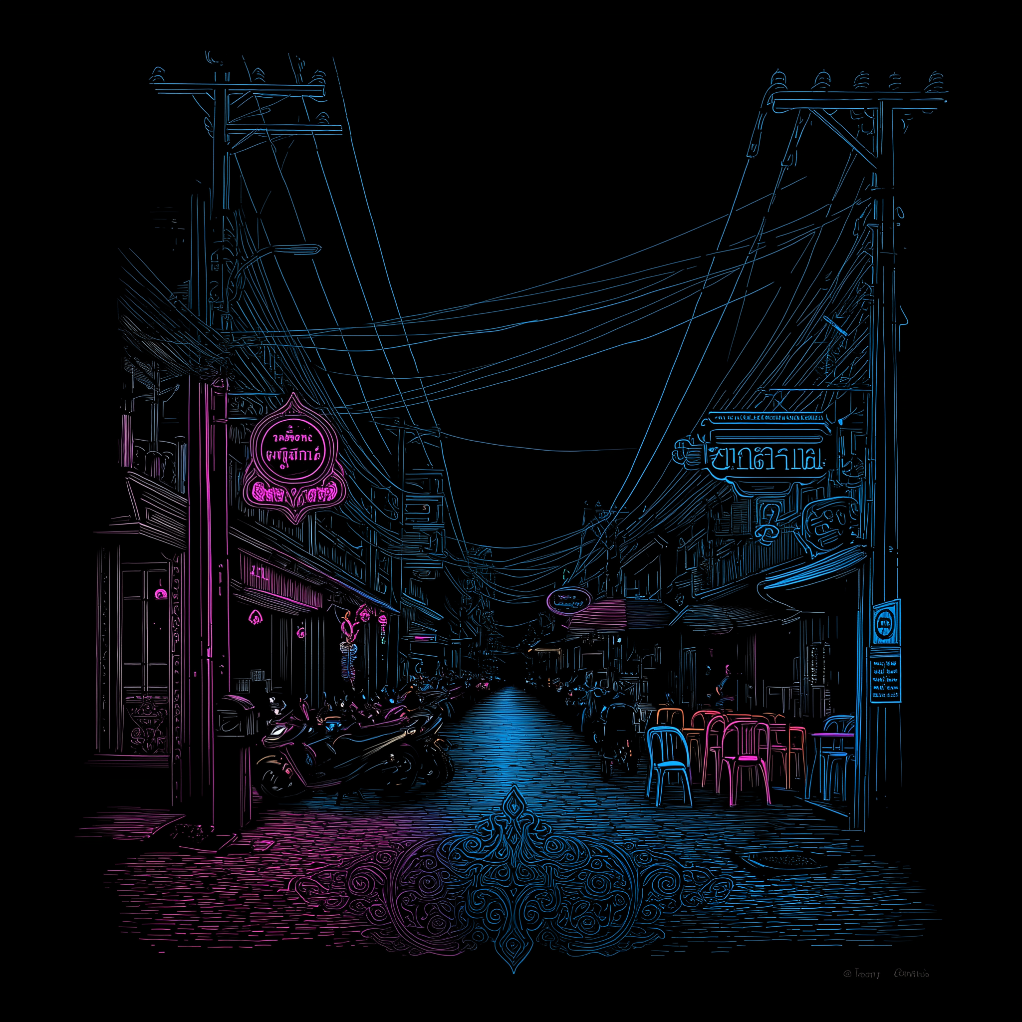 Original neon noir artwork for every chapter. Silhouettes, city lights, and atmosphere — designed to be felt, not just seen.
