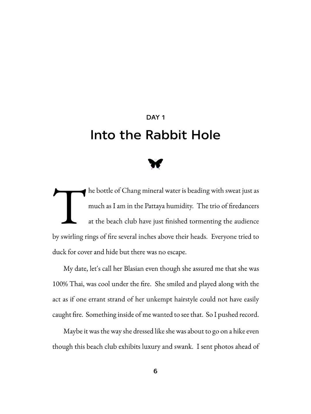 This is where it starts — Go Go Bars, Walking Street, and a man who just landed in Pattaya with no plan and no rules. Day 1 is the full opening chapter of Memoirs of a Butterfly. If the writing pulls you in, the other twelve nights are waiting.